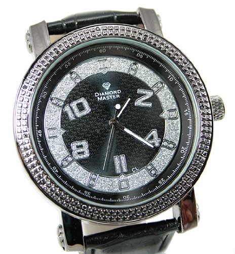 Gunmetal Black Case with Genuine Black Diamond accents, Smoke + Silver-tone face with Flash Bling Numbers, Quartz accuracy, Dress Watch, a 0 Value - 50 mm Gunmetal Black Metal Case with Genuine Black Diamond Accents, Stainless Steel Back, Water Resistant - Black Dial Dial Face, Silvery Flash Bling Numbers-Hours, Designer Graphic, Black-White Sweep Hour-Minute-Seconds Hands, Hour Markers + Sub-Dials with faceted CZs - Japan Quartz Movement for Accuracy, Black Wrist Strap, Supplied with Battery (Store Display Box supplied for .95 additional Shipping expense) - A Gunmetal Black Watch with Genuine Black Diamond Ice, Black + Silvery Bling Flashing Dial Face with Designer Graphics, Adds Attention Getting Style - Clubbin', Every Day, Work, Uptown or Gettin' Down