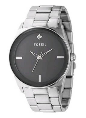 This watch definitely goes well with a dapper style. The stainless bracelet tapers for a modern look and a diamond at the 12-hour marker accents the gunmetal dial. From timeless classics to the latest fashions, Fossil is sure to have the timepiece that perfectly compliments your unique sense of style. Founded in 1984 when timepieces were created more for function than fashion, Fossil began to transform this notion with its unique combination of vintage 1950s Americana design and affordably accessible cool style. Adding to their collectability were the one-of-a-kind, trademark tins that came with the watches that mixed a creative spirit with a sense of humor. These iconic boxes are nearly as popular as the watches they hold and are regularly collected and traded throughout the world at flea markets, antique shops, and on eBay.