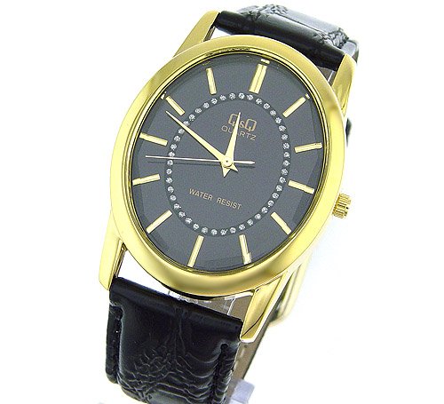 - Brand new and 30 water resistant Citizen/Q&Q collection black leather band dress watch!