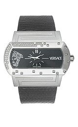 Swiss quartz movement, Dress watch, Stainless steel hands and indexes at 12 o'clock position, Silver-tone indexes as hour markers, Silver-tone Gianni Versace logo, Sapphire crystal lens, Stainless steel bezel is set with 'scattered' genuine diamonds, Stainless steel engraved Medusa crown, case and caseback with four screws, 30 meters/100 feet water resistant